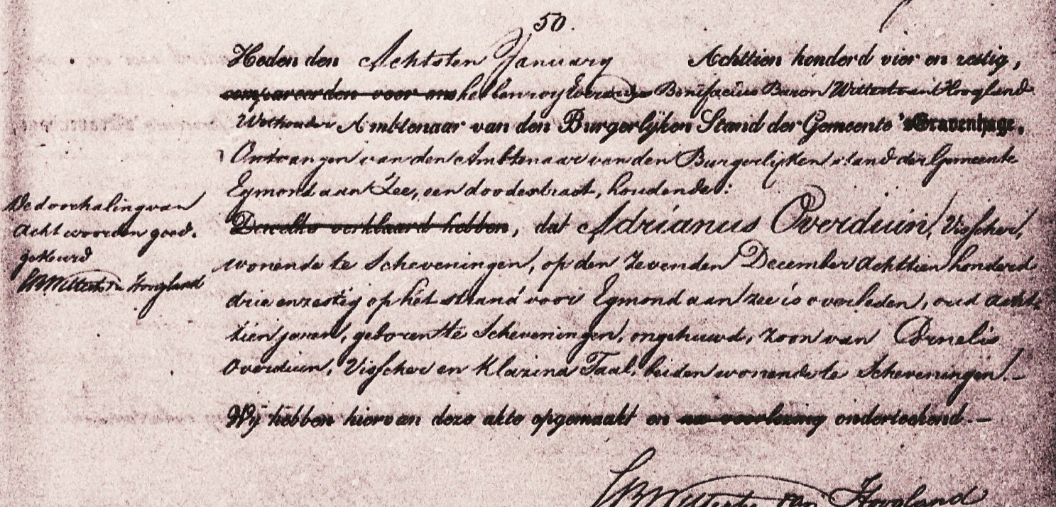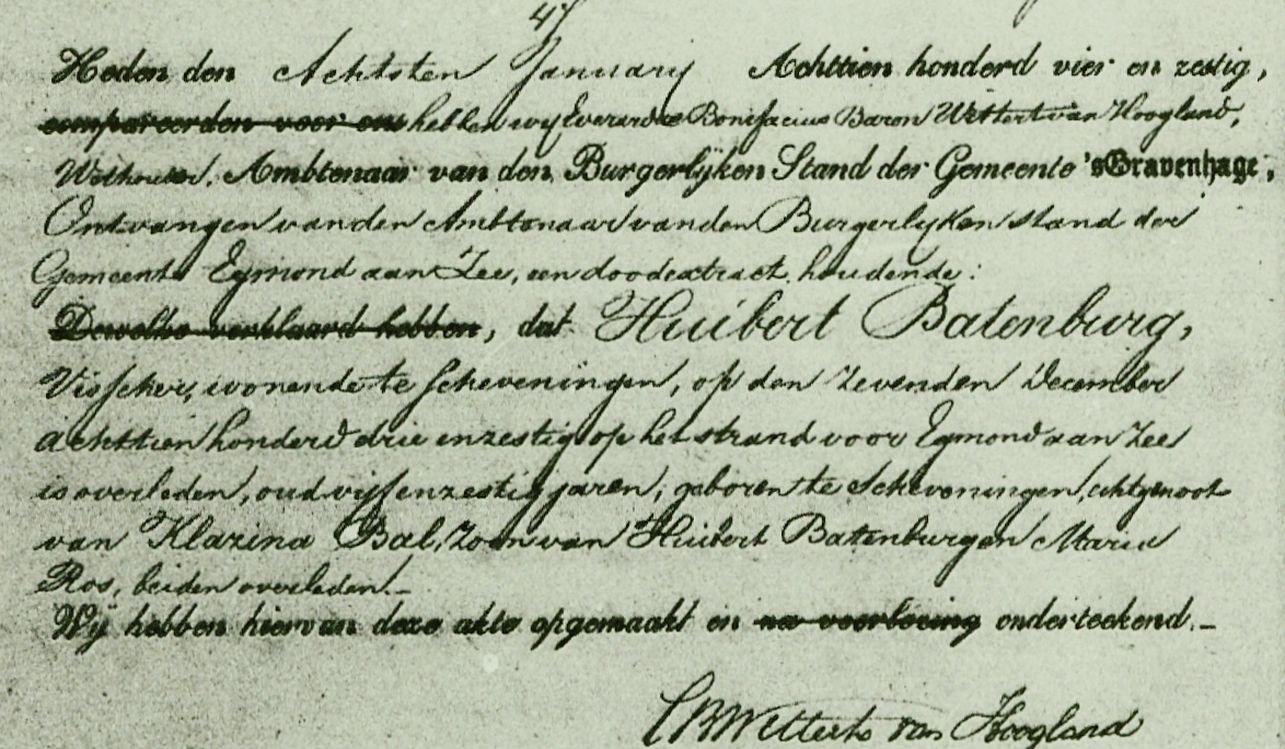 * Huibert Batenburg, Wouter Harteveld, Dirk Klok en Adrianus Overduin spoelden op 7 december op het strand bij Egmond aan/zee aan.