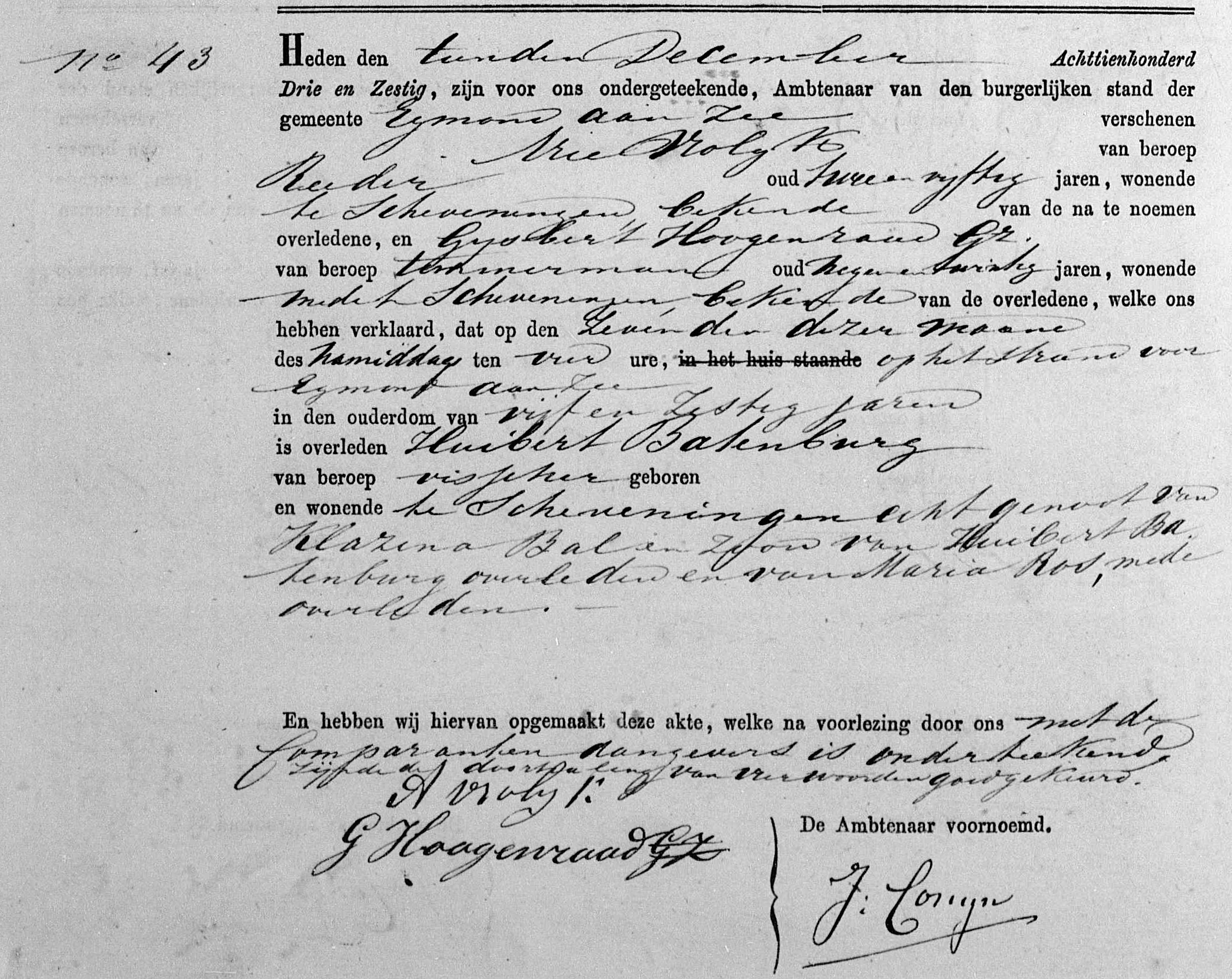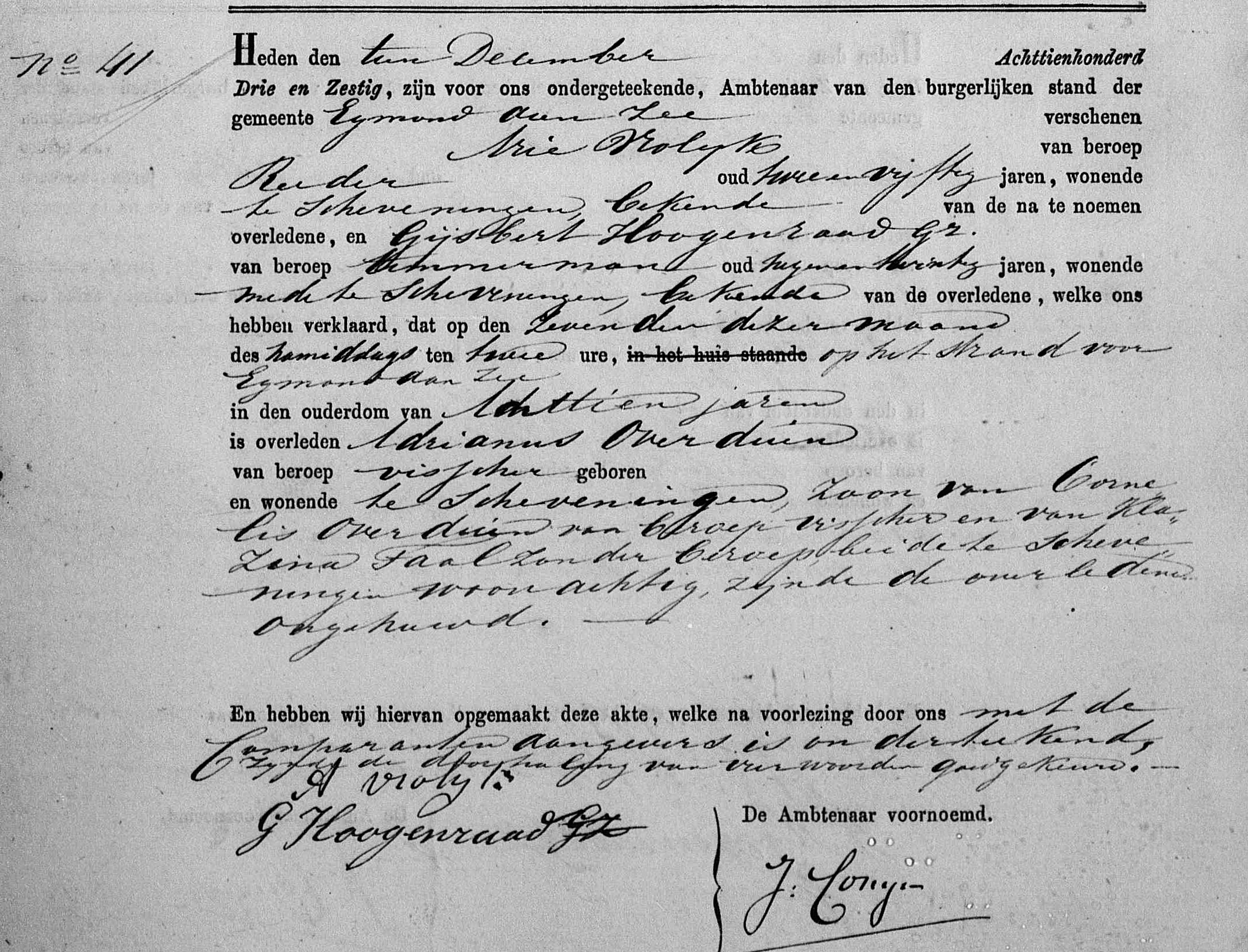 Eind november was de schuit voor de haringvisserij van Scheveningen vertrokken. Na de storm van 2 en 3 december spoelden op 10 december tussen Callantsoog en Petten twee lijken aan. Bij Egmond a/zee spoelden vier lijken aan. De nabestaanden vertrokken daags daarna naar Egmond a/zee voor de teraardebestelling. Enige goederen van de schuit dreven later ook op het strand bij Egmond a/zee aan.