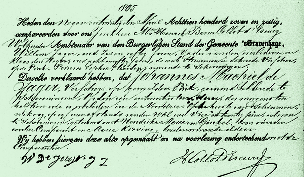 De schuit van reder T. de Jager Mzn. was ten noorden van Texel in slecht weer terechtgekomen. Matroos Johannes Machiel de Jager, zoon van de stuurman, is tijdens dit slechte weer overboord geslagen en verdronken. ‘Hij was een oppassend mensch in de kracht zijns levens en eerst kort geleden gehuwd.