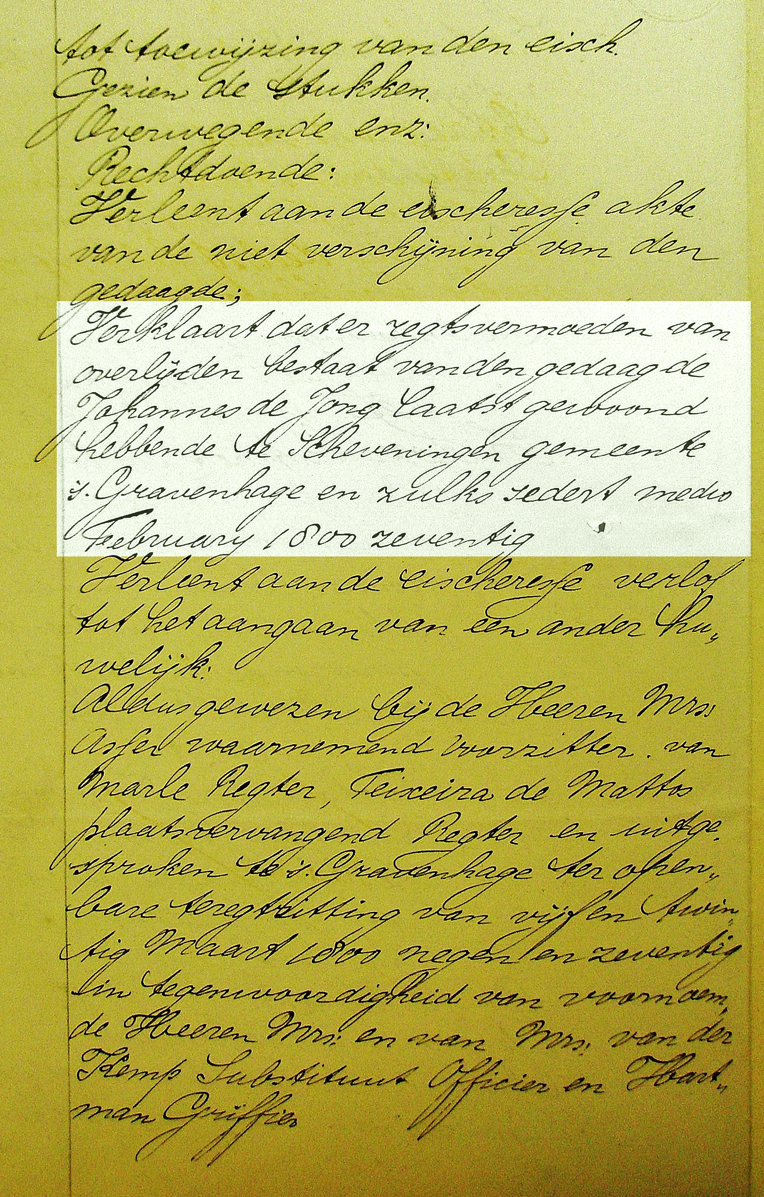 Rond 22 februari kwam er van Vlieland een telegram dat er twee Scheveningse pinken tijdens slecht weer met het aanlopen van de haven van Oost - Vlieland waren omgeslagen. De pink spoelde op het strand van Vlieland aan, maar lichamen werden er in het wrak niet meer aangetroffen.