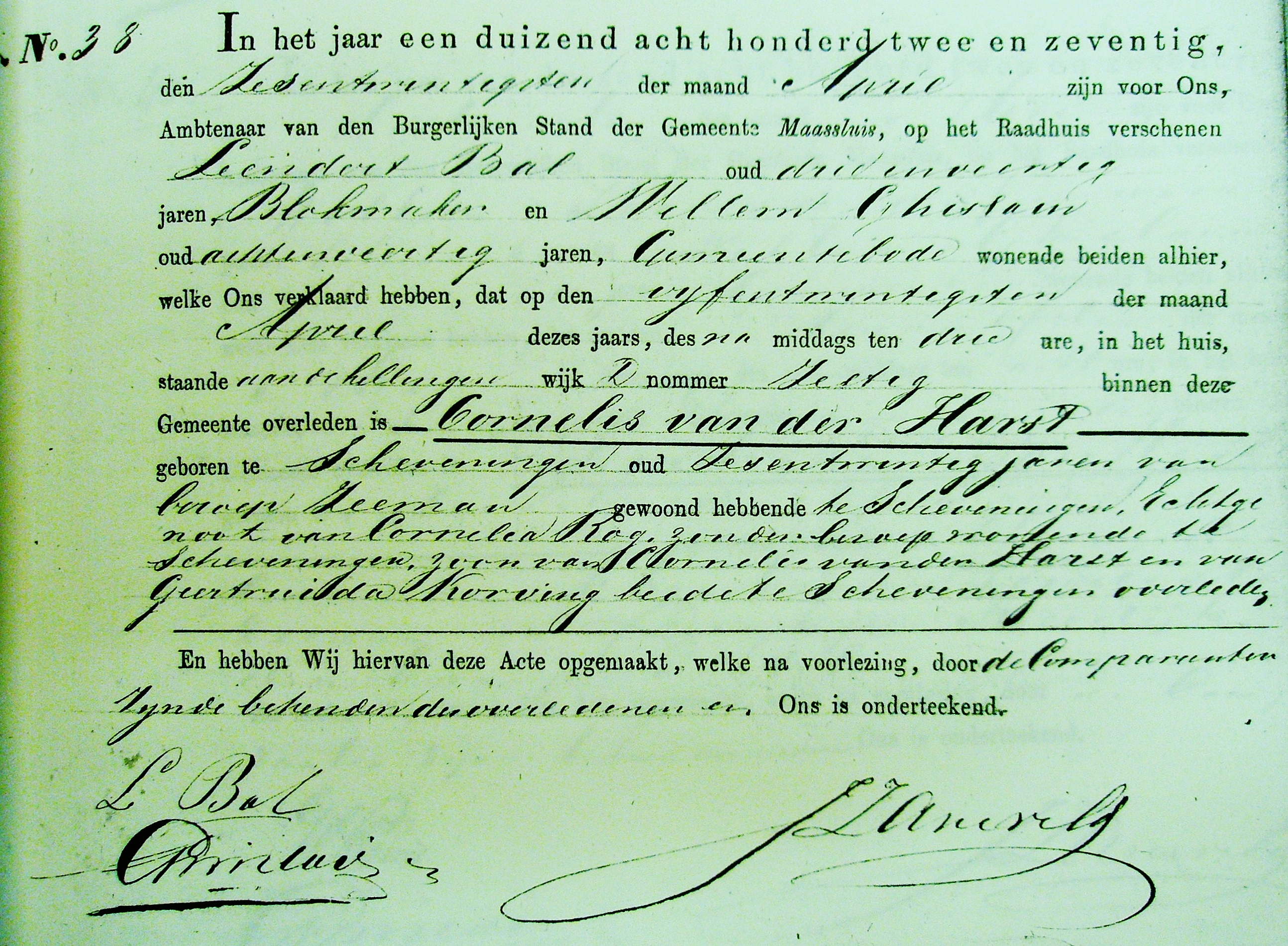 In de haven van Maassluis verdronk matroos Cornelis van der Harst. Na enkele dagen werd het lichaam opgehaald.