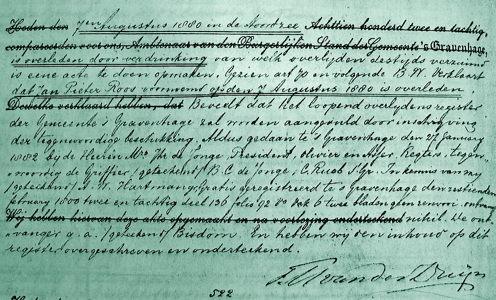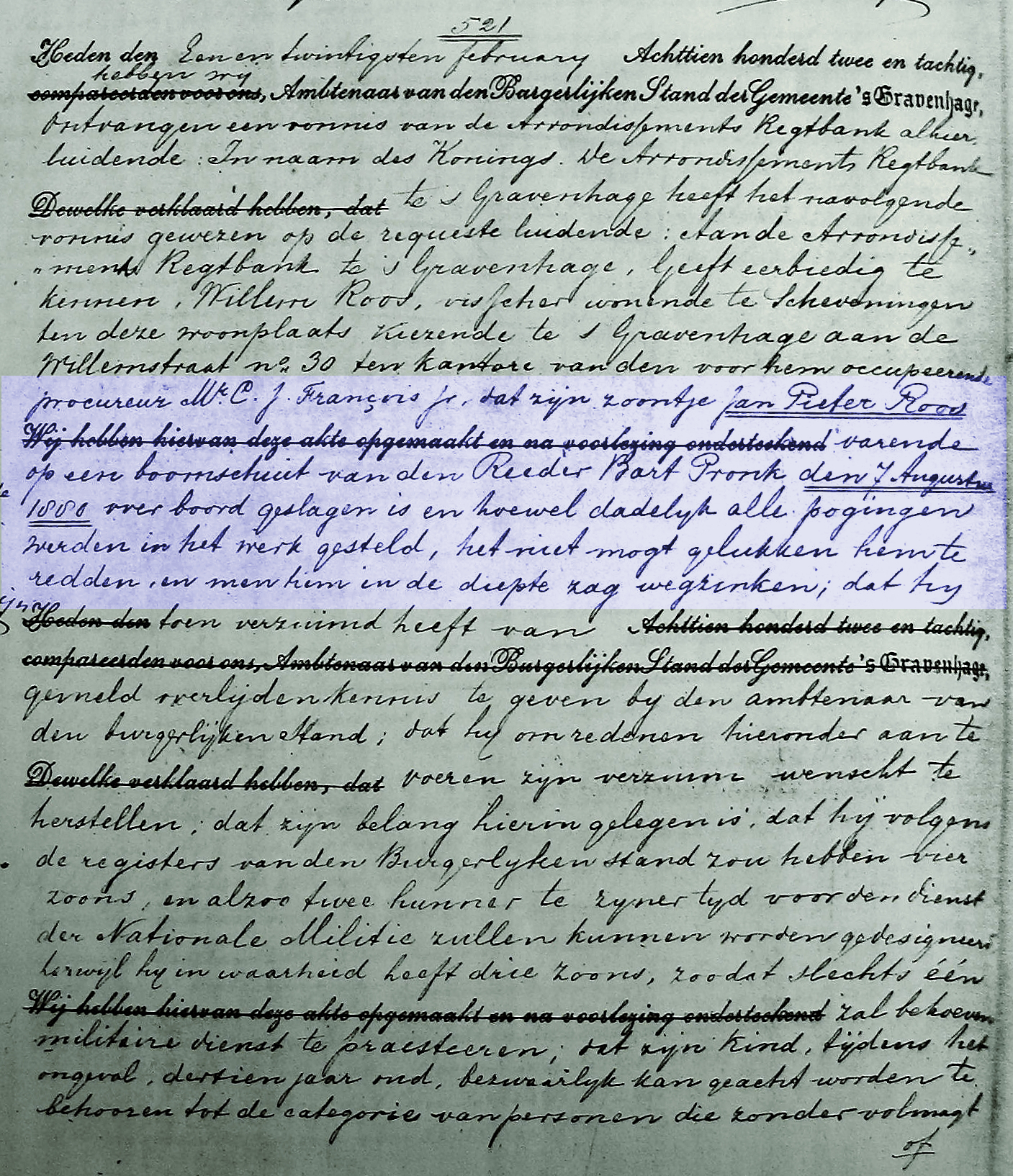 Aan boord van de bomschuit sloeg Jan Pieter Roos overboord. Van alles werd nog geprobeerd om hem te pakken. Men slaagde er niet in zodat men moest toezien hoe de jongen in de diepte wegzonk.