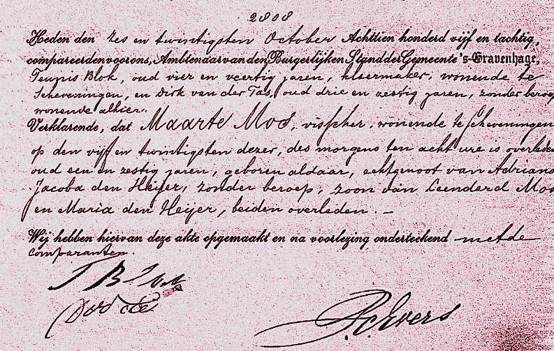 Met ingenomen pronkvaan landde op de 26e oktober de bomschuit te Scheveningen. Schipper Mos had een droevige tijding. Zijn eigen vader was tijdens de reis overleden.