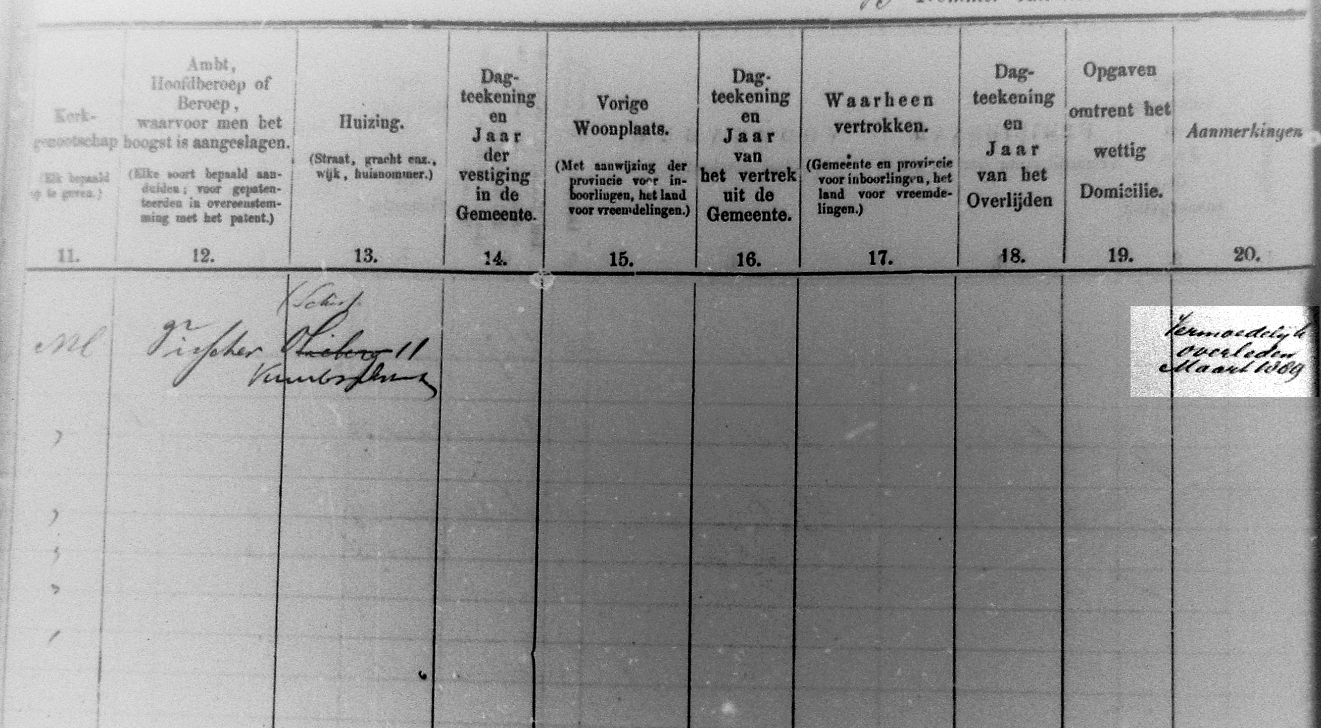 De zeillogger lag ter hoogte van de Doggersbank aan het trawlnet toen op het punt van inhalen van het net slechts schipper Jan Bruin, matroos Joris Buitenhek en matroos Dijkhuizen zich al aan dek bevonden. Het stormde niet maar er stond een krachtige wind met een lastige zee. De rest van de bemanning bevond zich nog benedendeks om hun schoeisels e.d. aan te trekken. Nog maar net had schipper Bruin de twee matrozen aangeraden zich goed vast te houden toen een hevige grondzee de logger op z’n kant gooide. Doordat de logger nog aan het trawlnet lag ging het niet geheel plat. Echter schipper Bruin, de matrozen Buitenhek en Dijkhuizen waren daarbij als het ware opgenomen en overboord gesmeten. Dijkhuizen kon nog de lijn van de uitstaande trawl grijpen en zich met veel krachtinspanning naar de verschansing toe trekken. Intussen was de overige bemanning bovendeks gekomen en konden de om hulp schreeuwende Dijkhuizen binnenboord trekken. De beide andere waren echter te ver van het schip verdaagd waarbij men moest toezien dat zij alle moeite hadden om zich boven water te houden. De bemanning kapte daarop haastig het trawlnet waardoor de logger vrijer in haar beweging kon worden. Echter wat men ook deed, men kon de logger maar niet voldoende onder wind krijgen waardoor een draai gemaakt kon worden om de twee om hulp roepende collega’s te redden. Kennelijk waren de twee de zwemkunst meester want zij zwommen nog wel een kwartier met hun laatste krachten achter de logger aan. Uiteindelijk begaven hun krachten het zodat de Johannes Bruin en zijn zwager Joris Buitenhek in de diepte wegzonken. Johannes Bruin liet een weduwe met 5 kinderen na. Zijn zwager Buitenhek had geen kinderen.