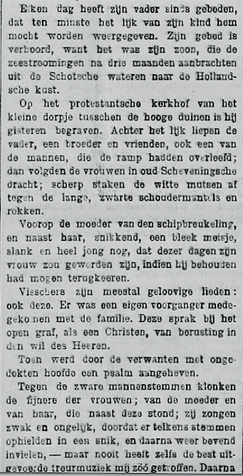 Groot was echter de verbazing toen op 2 december de bomschuit SCH 34 ‘Holland II’ van reder J. Jenezon de haven Maassluis binnenliep met aan boord één van de verdronken gewaande matrozen. De schipper Cornelis den Dulk Cz. die eveneens op de noodseinen was afgekomen vond de Noordwijker matroos Matthijs van der Linden nog zwemmend in het woelige water en kon hem heelhuids aan boord nemen. Een volgende verbazing was dat de ‘Vrouw Adriana’ met haar ingedeukte boeg maar niet meer als een wrak, maar nog half drijvend, op het strand bij Noordwijk aandreef. Even opmerkelijk is het feit dat het lichaam van schipper Johannes Beekhuizen op 2 maart van het daaropvolgende jaar op het strand van Wijk aan Zee aanspoelde.