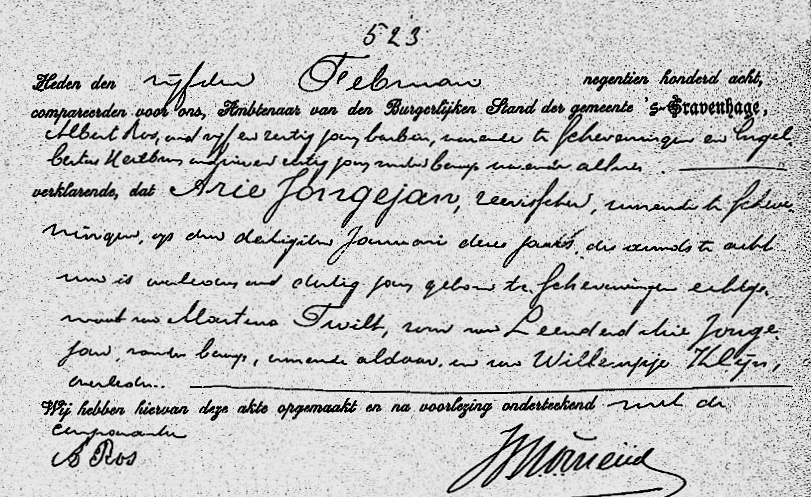 Op 20 januari 1908 zond reder Den Dulk twee van zijn schepen voor de winterharingvisserij naar de noordwestkust van Schotland. Deze vroege vorm van experimentele visserij had tot doel de vissers in hun beroep bezig te houden en een gunstiger resultaat te verkrijgen dan de trawlvisserij op rond- of platvis gedurende de wintermaanden bood. Het was aanvankelijk de bedoeling om het Schotse Stornoway - gelegen op het Hebriden-eiland Lewis- te bereiken om vanuit die vissersplaats, te haringvisserij uit te oefenen. De twee houten zeilloggers de SCH 252 ‘Zeeburg’en de SCH 307 ‘De Hoop’ kregen echter al tijdens de uitreis met veel stormweer te kampen. Hoewel het Caladonian Canal, een verbinding tussen het noordelijk gedeelte van de Noordzee en de westkust van Schotland, al tientallen jaren gereed was kozen de schippers Jongejan en Pronk vermoedelijk voor de meer noordelijke maar verraderlijke doorvaart van de Pentland Firth. Vast staat dat de ‘Zeeburg’ de wateren rond Stornoway niet bereikte en aan vissen is toegekomen. Stortzeeën bestookten de logger waarbij schipper Arie Jongejan tussen een stuk weggeslagen verschansing en de mast bekneld raakte waarbij zijn borstkas werd ingedrukt en enkele uren daarna overleed. Met veel averij aan de logger koos de bemanning voor de terugreis waarna het in de eerste week van februari, met aan boord het lichaam van hun schipper, Vlaardingen binnenliep van waaruit men reder Den Dulk op de hoogte stelde. Op 5 februari kon bij de burgerlijke stand het overlijden van Arie Jongejan worden aangegeven.