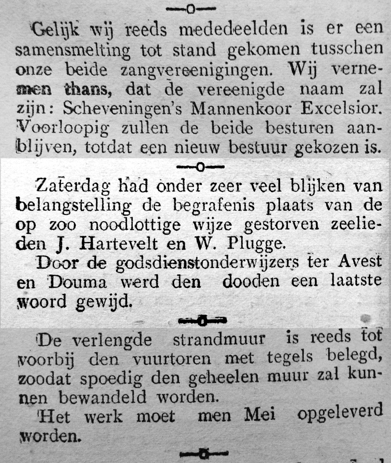 Een stortzee sloeg de schipper zodanig tegen het dek en de verschansing aan dat hij naast een gapende hoofdwond en een hersenschudding nog een verbrijzeld been opliep. Een matroos raakte zwaar gekneusd aan een been. De schipper Joris Harteveld overleed echter binnen enkele uren aan zijn verwondingen. Het lichaam werd te Vlaardingen aan wal gebracht en vervolgens naar zijn woning te Scheveningen vervoerd. Op 28 november vond de gezamenlijke begrafenis met die van Minnekus Plugge, stuurman van de SCH 47, plaats. De Scheveningse godsdienstleraren Ter Avest en Douma leidden de plechtigheid.