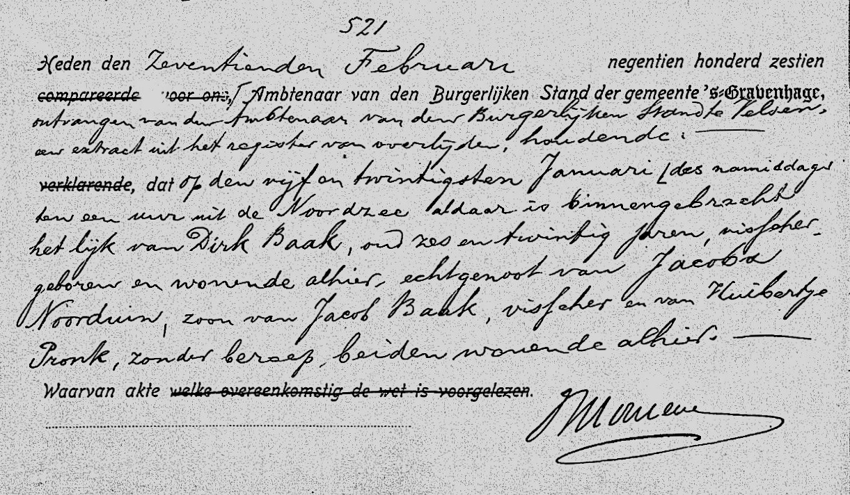 Het lichaam van Dirk Baak werd op 25 januari door de SCH 378 te IJmuiden aangebracht.