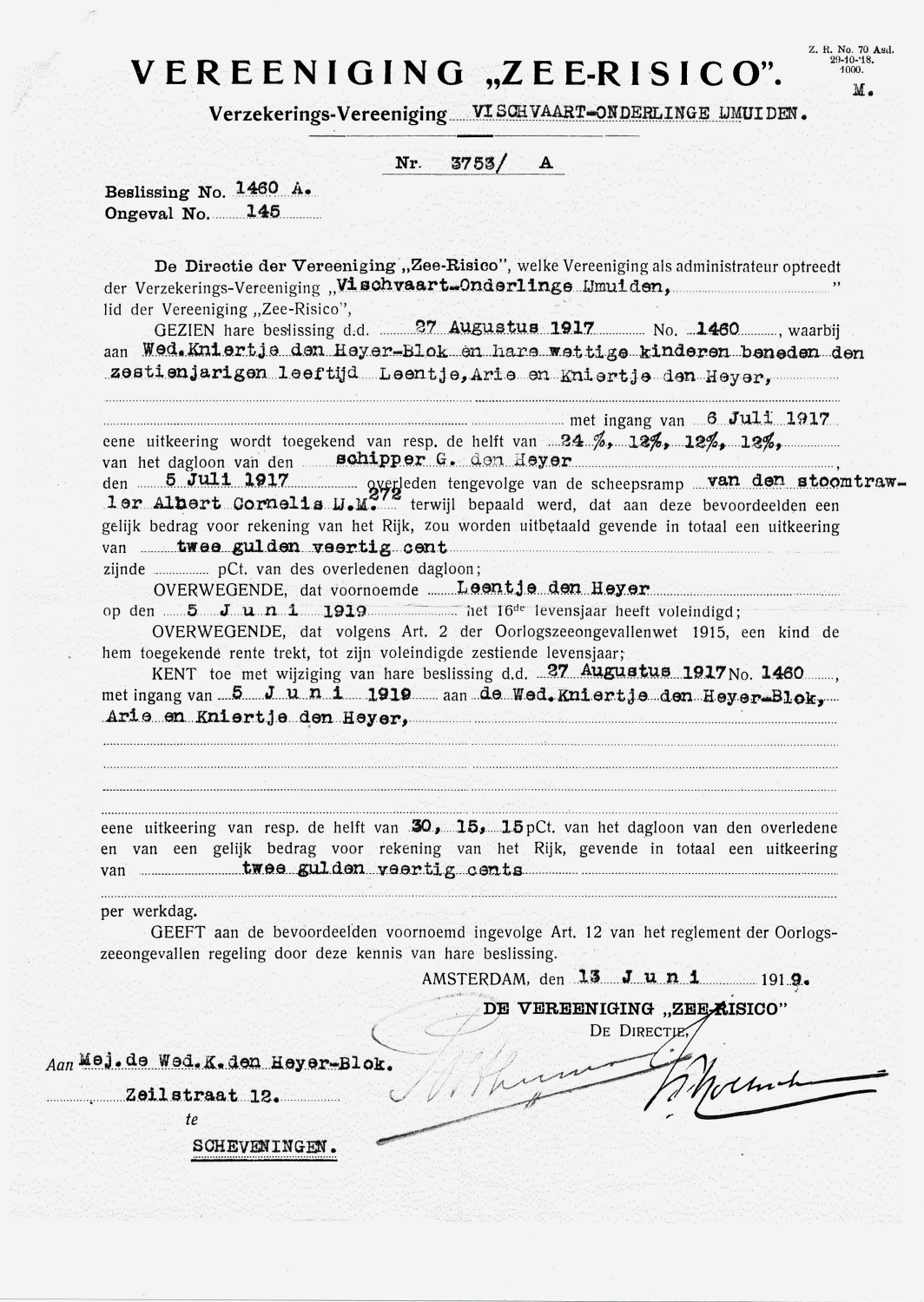 Gerrit den Heijer (44) en Gerrit den Heijer (16) zijn vader en zoon. De familie was in 1916 naar IJmuiden (gemeente Velsen) verhuisd. Kort na de ramp kwam de weduwe Den-Heijer-Blok met de overige kinderen weer terug naar Scheveningen.