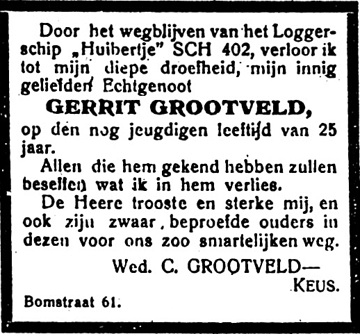 Dirk Keus: zijn zoon Johannes- kwam in 1926 om op de VL 213 'Theodoor.'