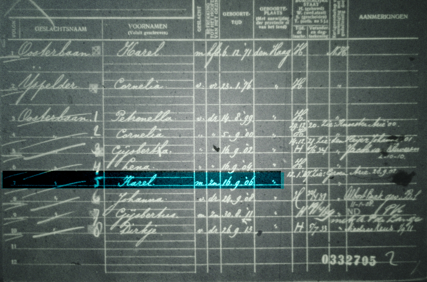 Te Scheveningen kwam het bericht dat op een Scheveningse haringlogger een 15-jarige scheepsjongen overboord was gevallen en dood uit het water was gehaald. Genealogisch onderzoek wees uit dat dit Karel Oosterbaan betreft. Het lichaam werd te Shields in Engeland aan wal gebracht en daar begraven.