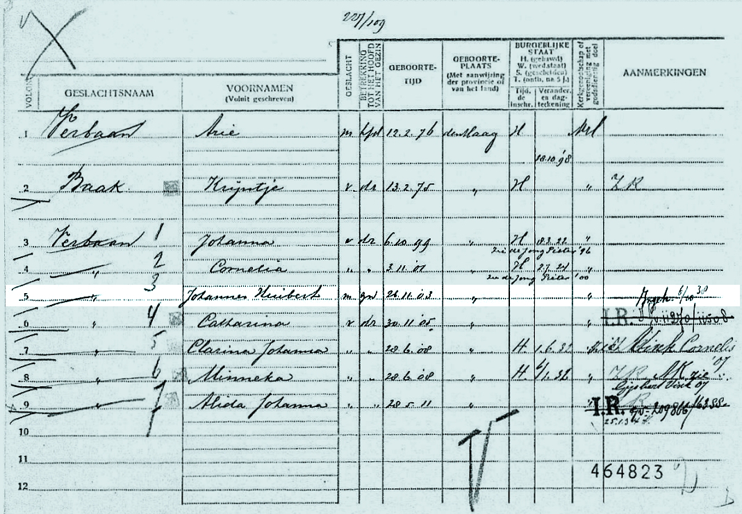 * Johannes Huibert Verbaan: zijn vader Arie,- en zijn broer Daniël verdronken in september 1918 op de SCH 106 'Petronella'.