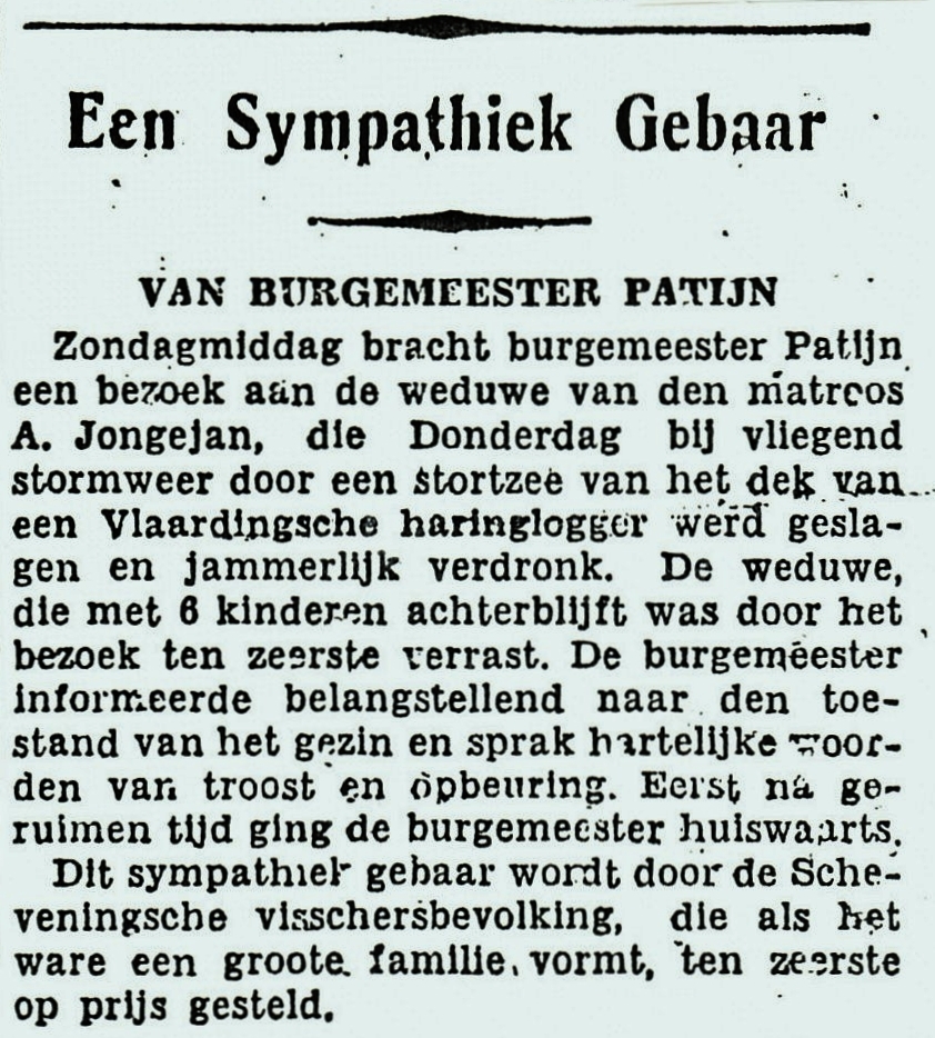 Door een stortzee sloeg Arie Krijn Jongejan overboord en werd niet meer gevonden.