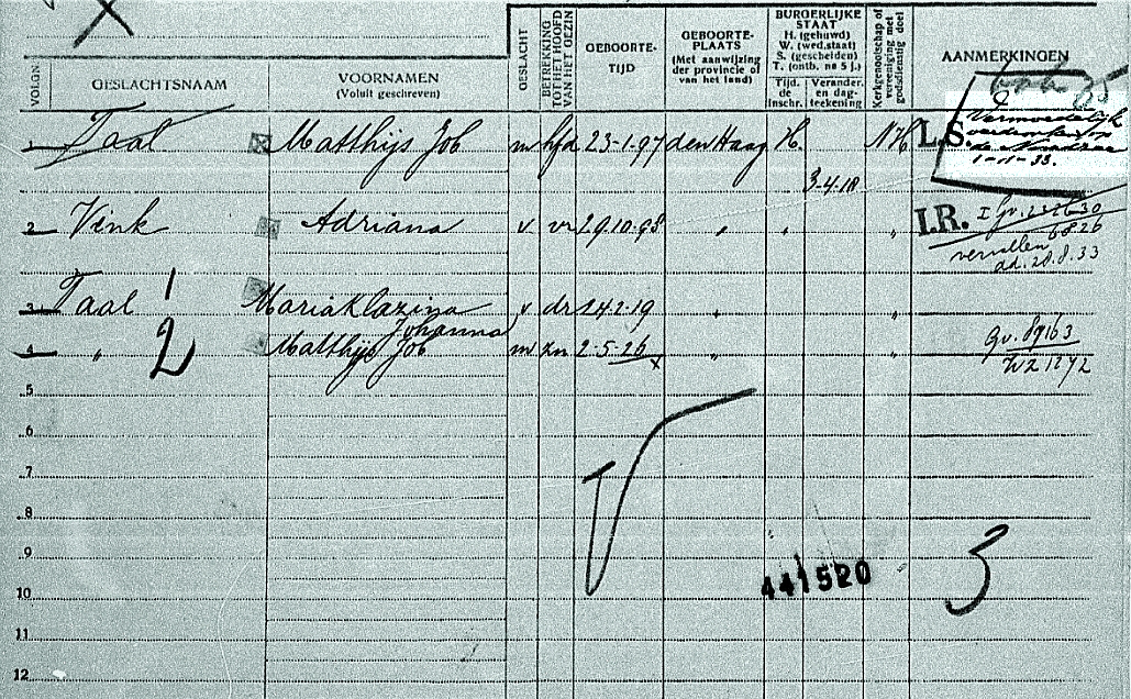 Slechts de vermelding in het Bevolkings-register 1913-1939 van het overlijden op de Noordzee van de visser Matthijs Job Taal.