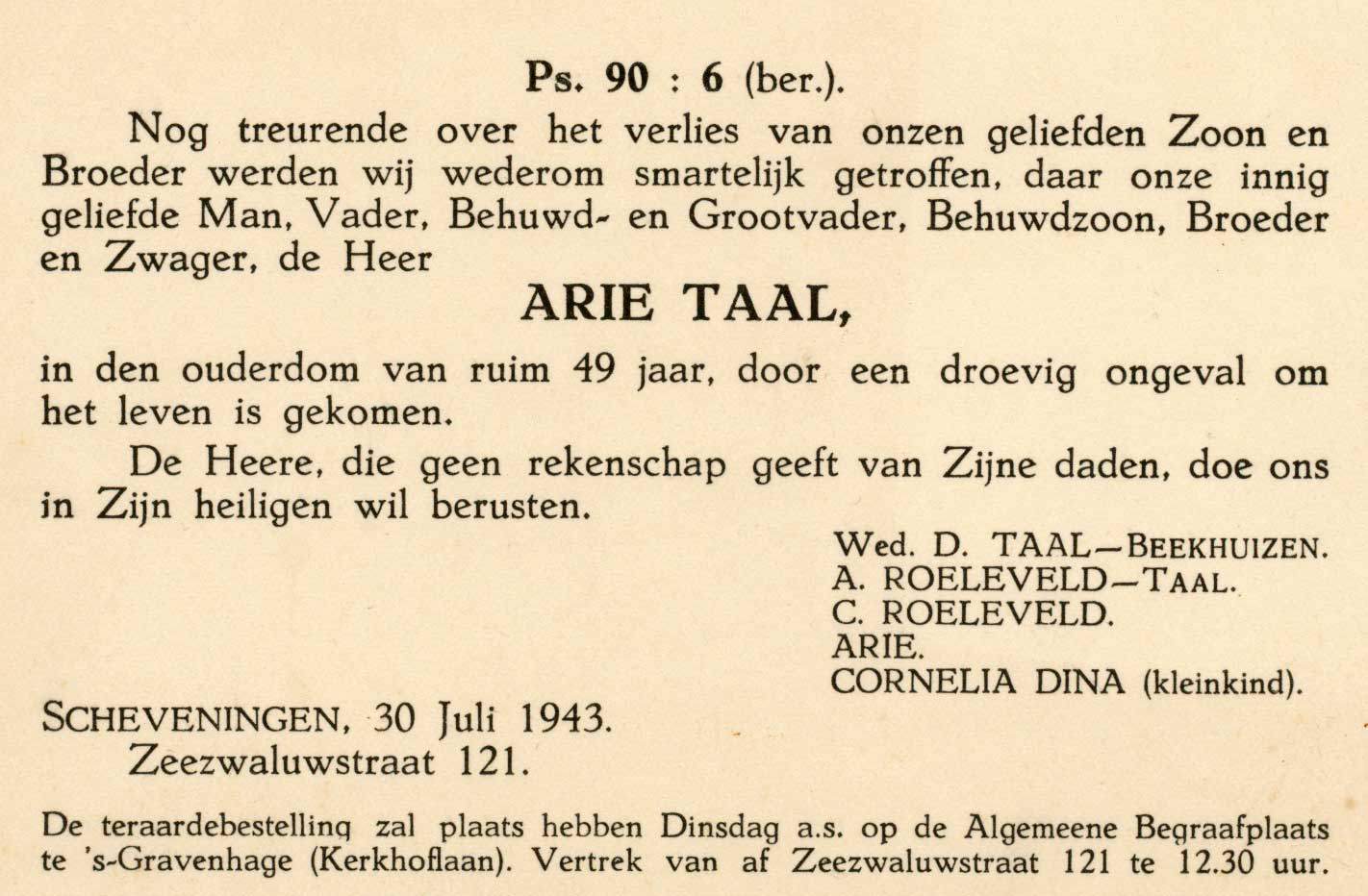 Arie Taal werd door de SCH 245 uit het water gehaald maar bleek reeds te zijn overleden.