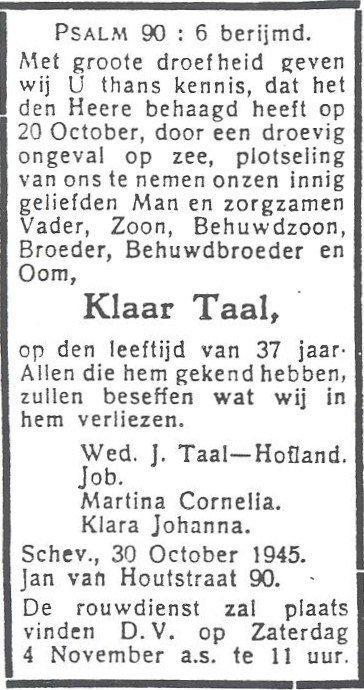 * Teunis van der Burg: zijn broer Johannes- kwam om in maart 1945 op de SCH 65 'Onderneming'.