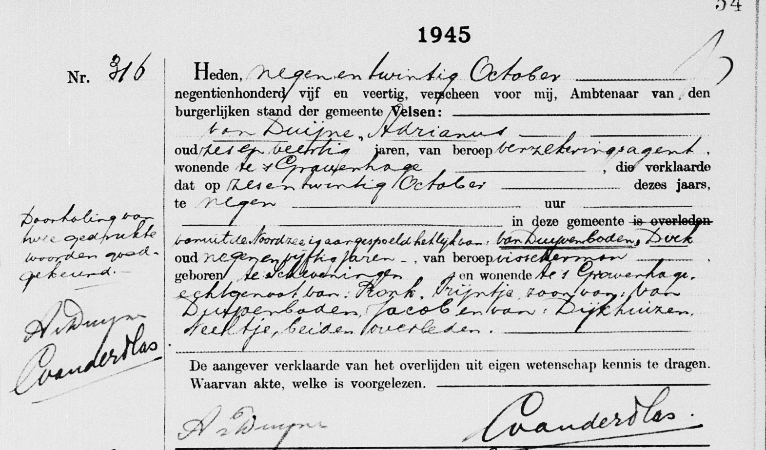 * Dirk van Duijvenbode: zijn vader Jacob- kwam in oktober 1903 om op bomschuit SCH-1 'Clara Johanna.' Zijn broer Cornelis- kwam in september 1911 om op de SCH-460 'Rotterdam.
