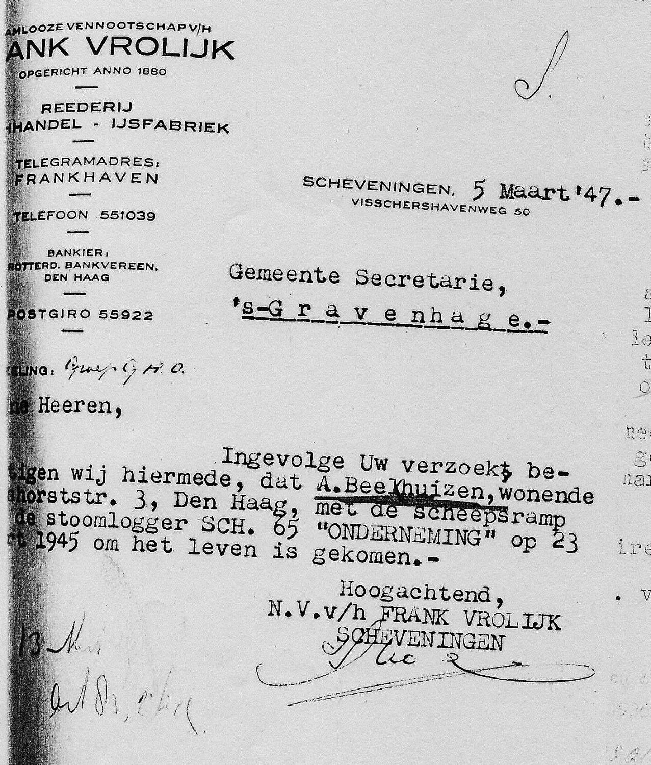 * Arie Beekhuizen: zijn zoon Gijsbert- kwam in dezelfde maand om op de IJM 263 'Guus'.
