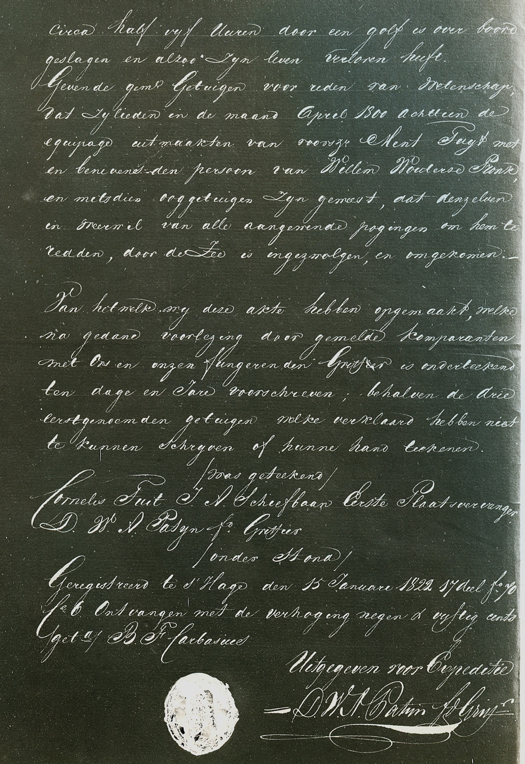 Zijn zoon Johannes, - verdronk in maart 1817 op de pink 'Jonge Johanna.'