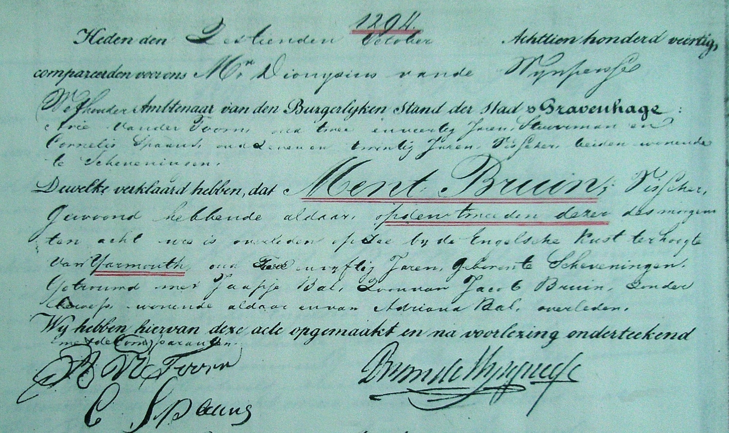 De schuit stootte 2 ½ uur ten noorden van Yarmouth op een wrak. De schuit sloeg lek, liep vol,sloeg op zijn zijde en dreef vervolgens weg. De acht vissers konden zich nog op een klein gedeelte van de schuit vasthouden. Vijf vissers moesten uiteindelijk loslaten of stierven tengevolge van uitputting.