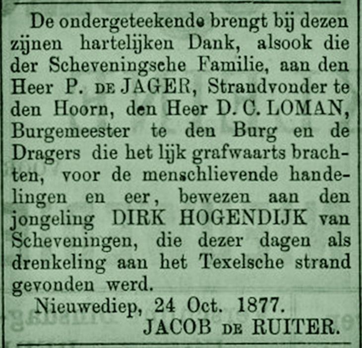 * Dirk Hoogendijk spoelde eind oktober op het strand bij Texel aan.