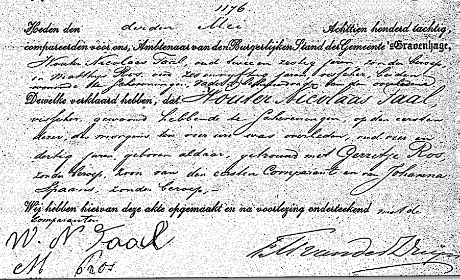 Op 9 april kwam de schuit te Scheveningen aan. Schipper Taal kwam melding doen van de vermissing van matroos Wouter Nicolaas Taal. Volgens latere berichtgeving in het Dagblad van Zuid-Holland en ’s-Gravenhage zou Taal overboord zijn gesprongen. Dit werd later, op 13 april in de Scheveningse Courant, door schipper Taal met klem ontkend. De matroos was kort voor de vermissing alleen aan dek geweest zodat daarvoor elk bewijs ontbrak. Daarnaast zou een dergelijke beschuldiging de weduwe en wezen van het slachtoffer zwaar treffen aldus schipper Taal destijds.