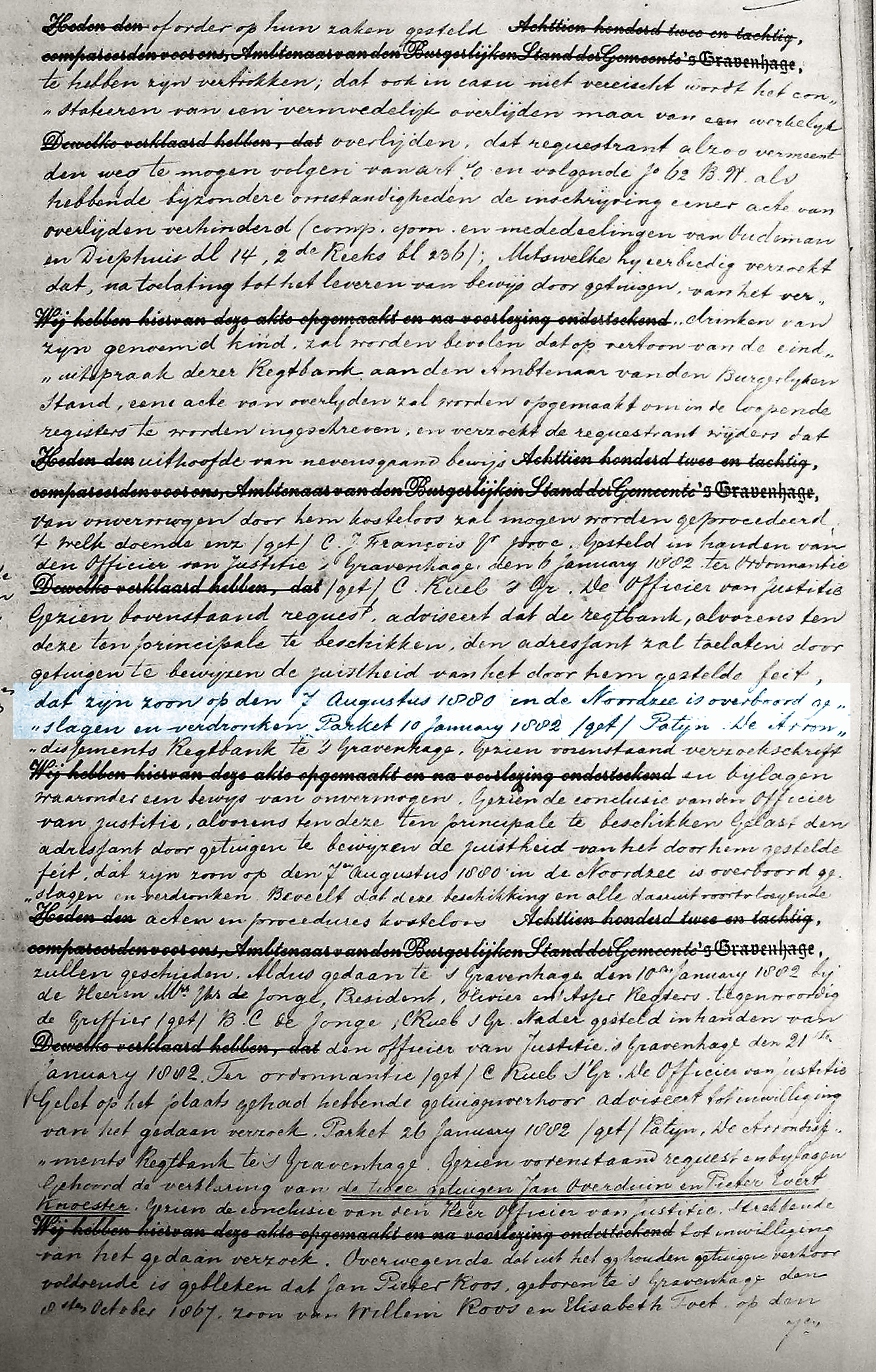 Aan boord van de bomschuit sloeg Jan Pieter Roos overboord. Van alles werd nog geprobeerd om hem te pakken. Men slaagde er niet in zodat men moest toezien hoe de jongen in de diepte wegzonk.