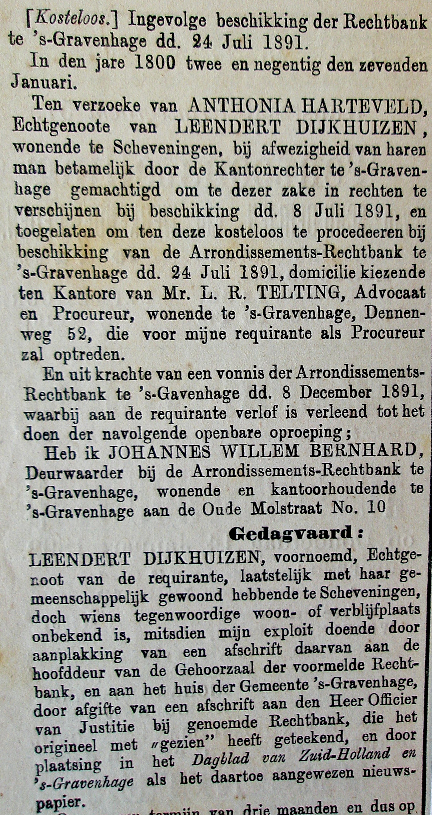 In de eerste week van februari was de bomschuit Avontuur naar de visgronden vertrokken maar in de derde week van die maand was er nog steeds niets van het schip vernomen. En het had gestormd in die voorgaande weken zodat de ongerustheid toeslag. Bovendien was na het slechte weer de windrichting Noord- en Noordwest gebleven- dus gunstig om thuis te zeilen- waardoor men allang in havens als Nieuwendiep of IJmuiden had kunnen binnenlopen stelde men destijds. In de derde week werd door de bemanning van de Scheveningse bomschuit Heiligerlee een vaatje petroleum aangebracht wat afkomstig van de Avontuur bleek te zijn. Ook de leverancier, die werd opgeroepen, herkende zijn artikel. Ook de oorspronkelijke stuurman/schipper van de Avontuur Arie Leenderd Dijkhuizen, die door ziekte juist die reis moest thuisblijven, herkende het vaatje. Al in mei liet de rederij van de weduwe P. Krul op de Vlaardingse werf Van Dam een logger bouwen. Het was haar eerste kielschip en zij gaf het de naam Avontuur. Schipper daarop werd de fortuinlijke Arie Leenderd Dijkhuizen.