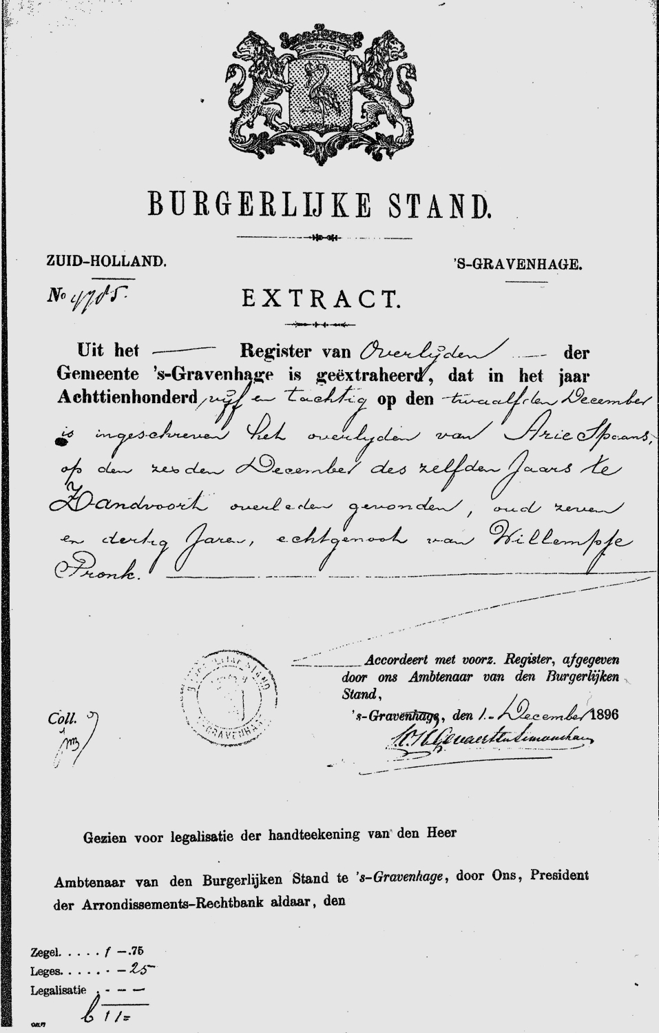 Tijdens het door de branding aankomen aan het Scheveningse strand sloeg Arie Spaans door een overkomende breker overboord. Het vanaf de bomschuit toegeworpen touwwerk had geen resultaat zodat Spaans, een vader van zeven kinderen, verdronk. Op 6 december spoelde op het strand van Zandvoort het lichaam aan.