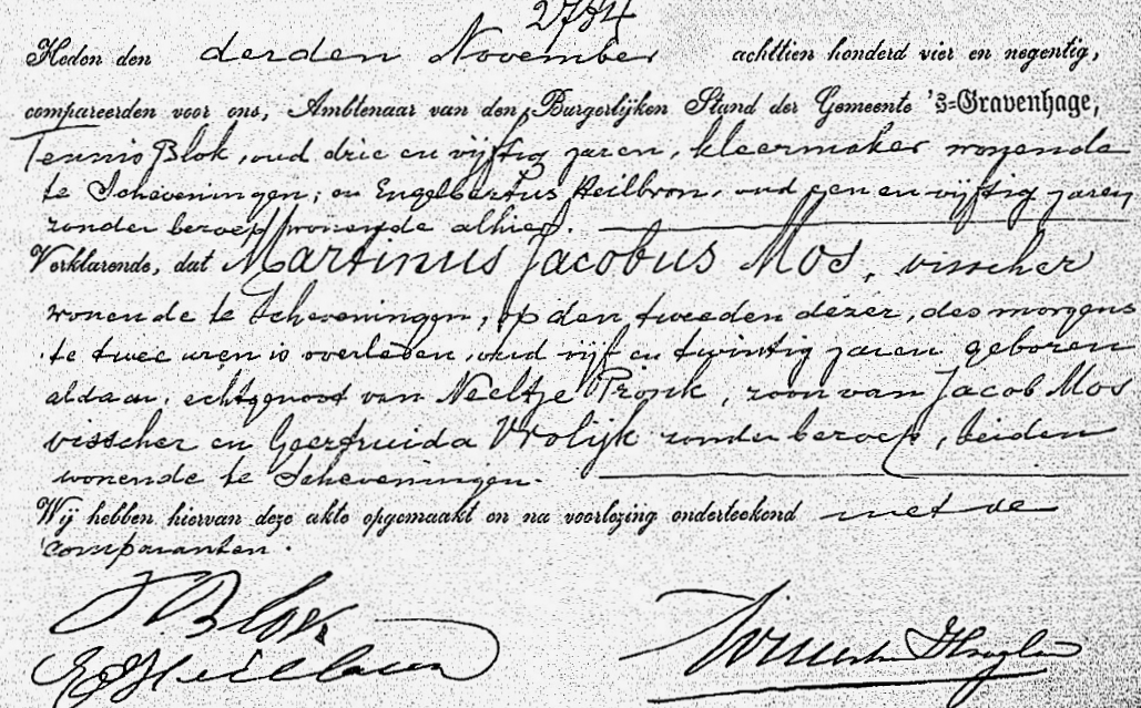 Na slechts drie dagen in zee te zijn geweest overleed de schipper Martinus Jacobus Mos aan boord van de bomschuit. Aanvankelijk dacht men aan cholera als doodsoorzaak, echter na geneeskundig onderzoek bleek het een darmbeknelling te zijn geweest.