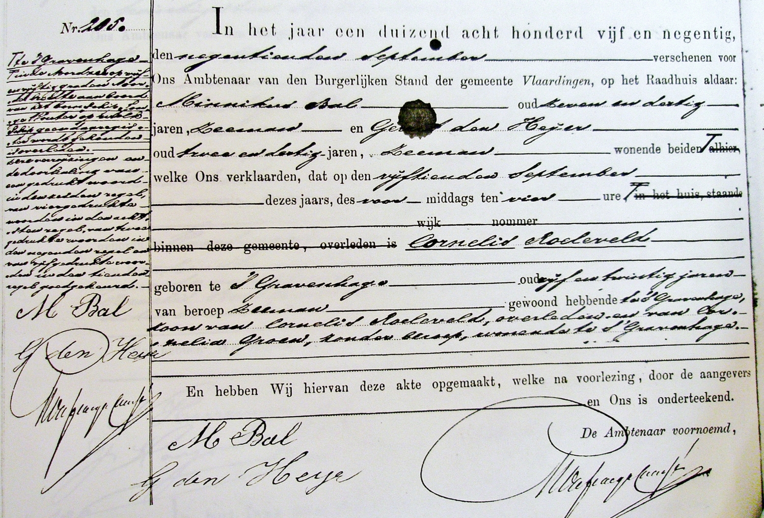 Op 25 september de aangifte te Vlaardingen dat Cornelis Roeleveld op 15 september op zee is overleden.