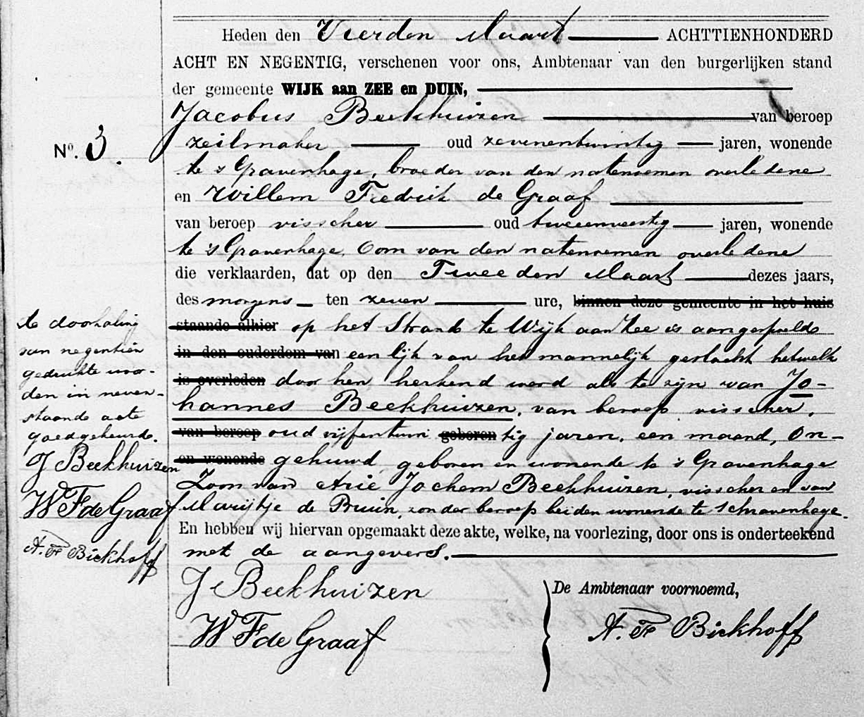 Groot was echter de verbazing toen op 2 december de bomschuit SCH 34 ‘Holland II’ van reder J. Jenezon de haven Maassluis binnenliep met aan boord één van de verdronken gewaande matrozen. De schipper Cornelis den Dulk Cz. die eveneens op de noodseinen was afgekomen vond de Noordwijker matroos Matthijs van der Linden nog zwemmend in het woelige water en kon hem heelhuids aan boord nemen. Een volgende verbazing was dat de ‘Vrouw Adriana’ met haar ingedeukte boeg maar niet meer als een wrak, maar nog half drijvend, op het strand bij Noordwijk aandreef. Even opmerkelijk is het feit dat het lichaam van schipper Johannes Beekhuizen op 2 maart van het daaropvolgende jaar op het strand van Wijk aan Zee aanspoelde.