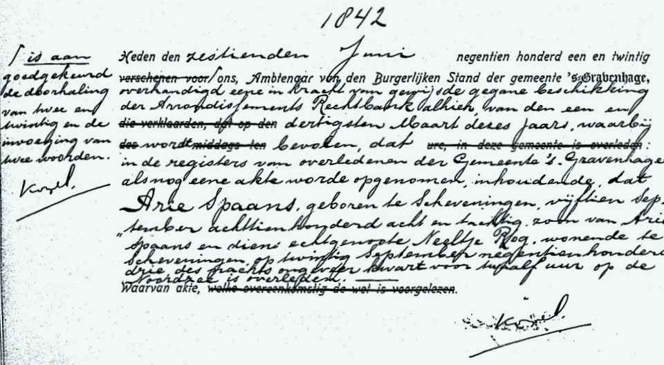 Cornelis Spaans: in het Bevolkingsregister 1895-1913 wordt het foutieve jaartal 1904 vermeld.