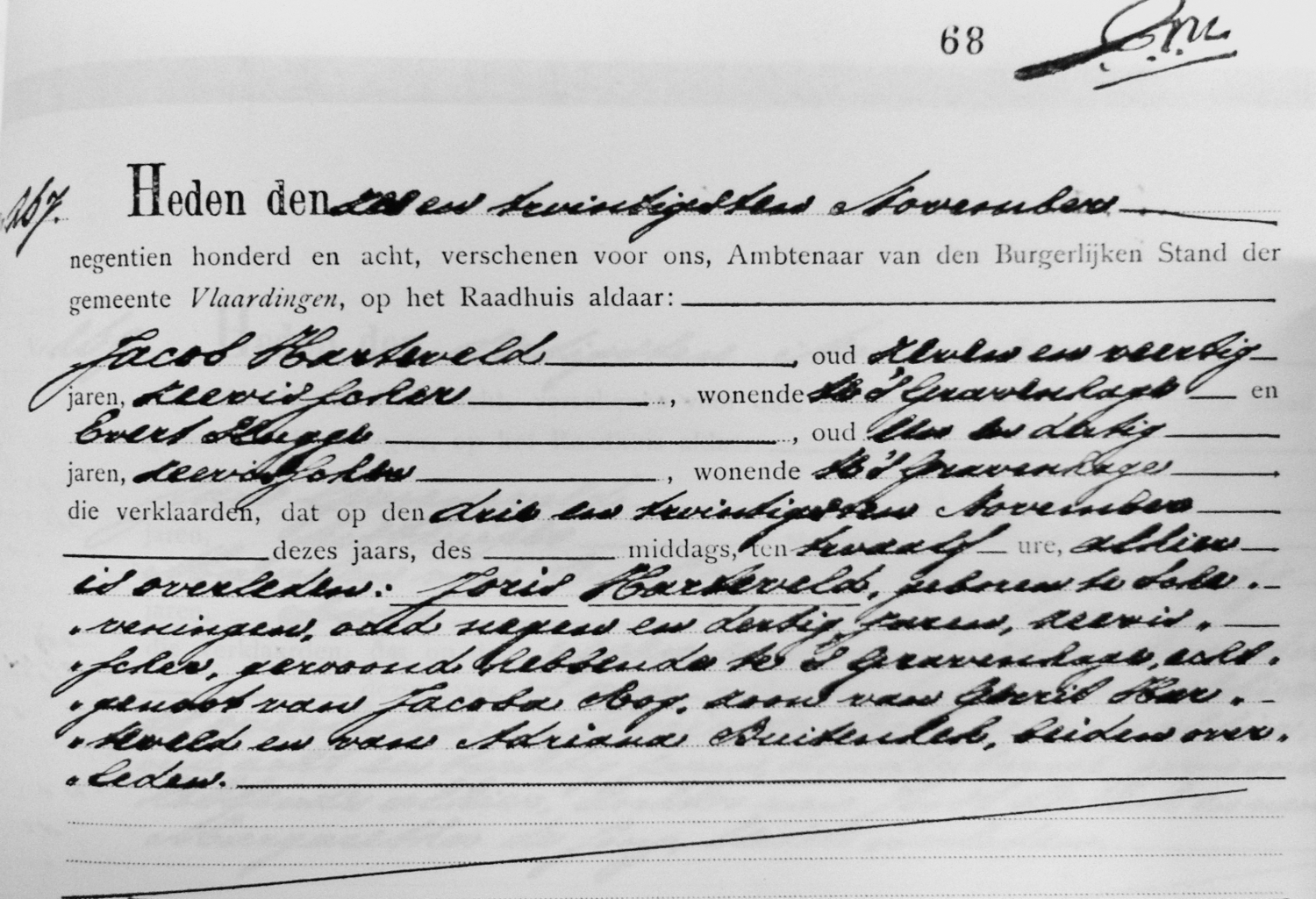 Een stortzee sloeg de schipper zodanig tegen het dek en de verschansing aan dat hij naast een gapende hoofdwond en een hersenschudding nog een verbrijzeld been opliep. Een matroos raakte zwaar gekneusd aan een been. De schipper Joris Harteveld overleed echter binnen enkele uren aan zijn verwondingen. Het lichaam werd te Vlaardingen aan wal gebracht en vervolgens naar zijn woning te Scheveningen vervoerd. Op 28 november vond de gezamenlijke begrafenis met die van Minnekus Plugge, stuurman van de SCH 47, plaats. De Scheveningse godsdienstleraren Ter Avest en Douma leidden de plechtigheid.
