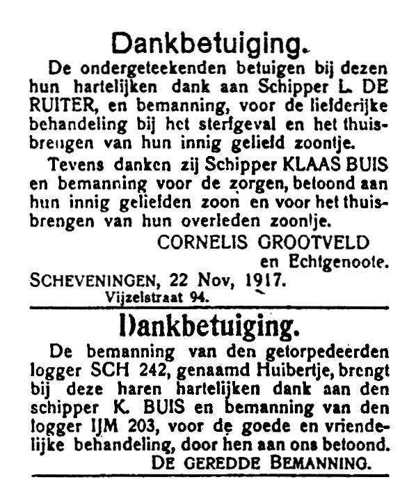 Door geschut om het leven gekomen. (1917)