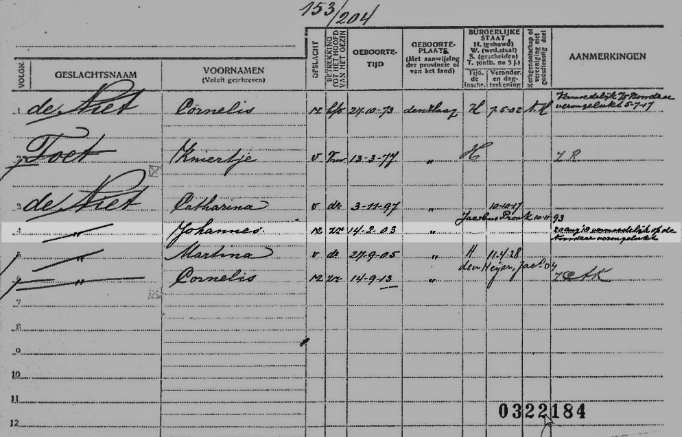Johannes de Niet: zijn vader Cornelis- kwam in juli 1917 om op de IJM 272 'Albert Cornelis'.