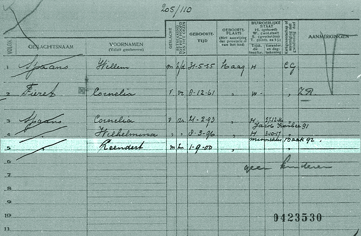 * Leendert Spaans: zijn vader Willem- overleed in augustus 1919 in het Britse Scarborough afkomstig van een onbekend gebleven schip.