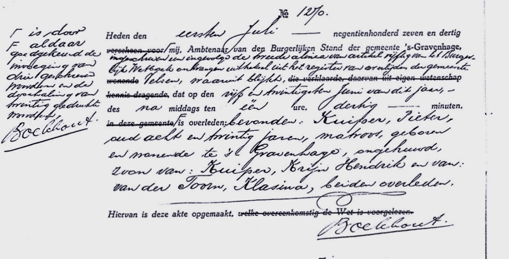 * Pieter Kuiper werd op 25 juni 1937 uit de buitenhaven van IJmuiden opgebaggerd.
