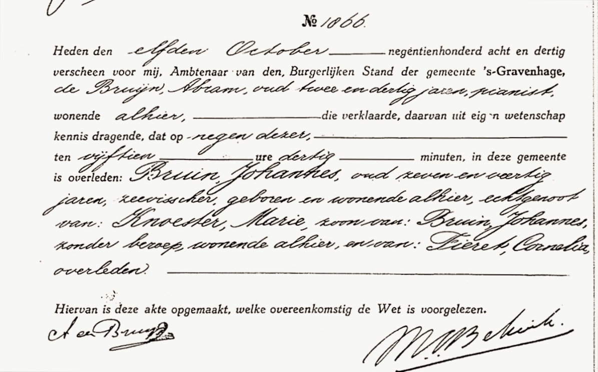 * Johannes- en Cornelis Bruin zijn vader en zoon. * Cornelis spoelde op 1 november ter hoogte van Heemstede op het strand aan.