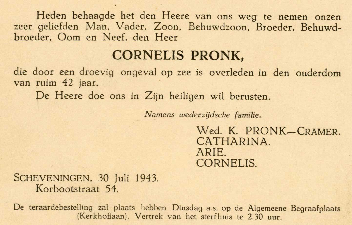 Cornelis Pronk werd ook uit het water gehaald maar overleed enige ogenblikken daarna.