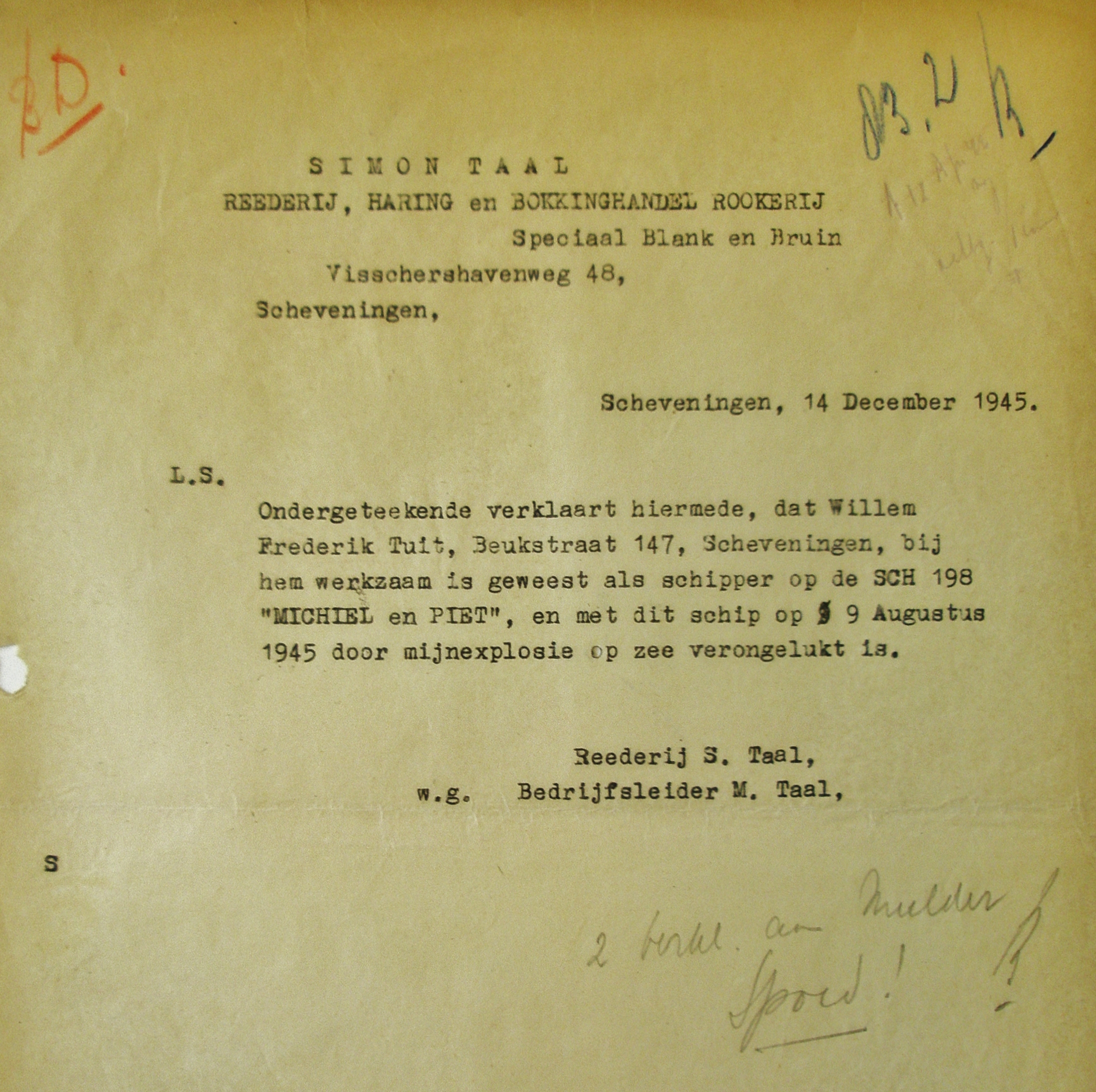 Bij het omvaren van IJmuiden naar Vlaardingen niet aangekomen (1945)