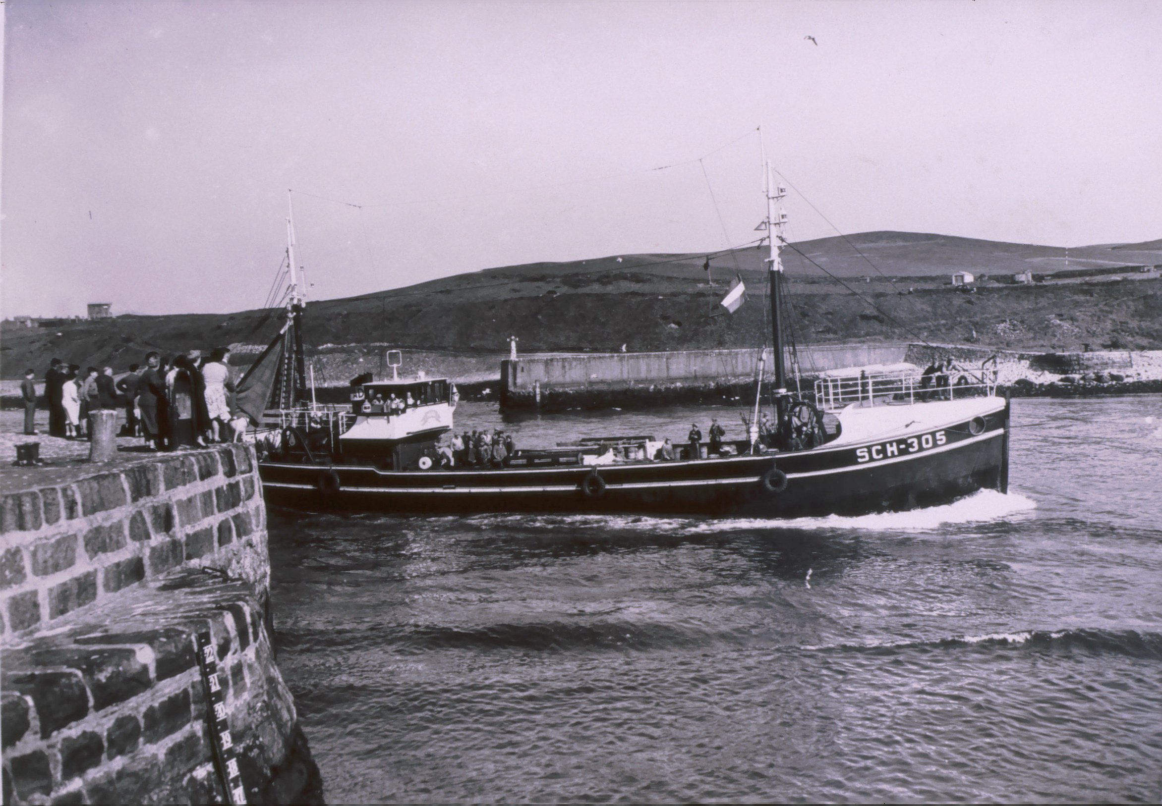 De lekgeraakte logger werd door de SCH 305 naar het Schotse Aberdeen gesleept. De schipper bleef daarbij alleen aan boord. De logger zonk echter tijdens de sleep waarbij schipper Maarten den Heijer verdronk.